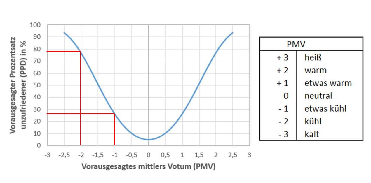 - Das vorausgesagte mittlere Votum (PMV) für thermische Behaglichkeit
