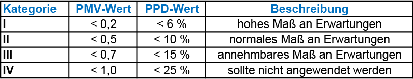 Viele technische Regeln der TGA und der LüKK, zum Beispiel die DIN EN 16798 Teil 1 „Eingangsparameter für das Raumklima“ (2022), verweisen bei der Behandlung der thermischen Behaglichkeit auf die DIN EN ISO 7730 und übernehmen und interpretieren deren Empfehlungen und Ergebnisse.