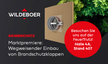 Lehmplatten sind die ökologische Alternative für nachhaltiges Bauen. Wildeboer bietet eine innovative Einbaulösung für die Brandschutzklappen FK90 und FR90. Schnell, sicher und ressourcenschonend durch geringen Materialaufwand und schnelle Montage. Optimal für moderne, nachhaltige Bauprojekte. Auf der FeuerTrutz erleben, Halle 4a, Stand 407.