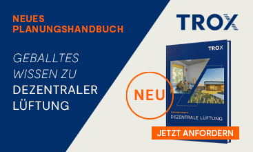 Wann sind dezentrale Lüftungslösungen eine technisch und wirtschaftlich belastbare Alternative zur klassischen Zentralanlage? Das kostenlose TROX Planungshandbuch unterstützt bei der systematischen Bewertung und Auslegung – mit technischer und normativer Einordnung sowie konkreten Planungsparametern für Neubau und Bestand. Jetzt anfordern!