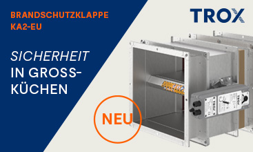 Täglicher Funktionslauf, energieeffiziente Absperrung des Abluftstrangs „Küche“ und Schließzeit unter 3 Sekunden bei Temperaturen über 72° C: Die KA2-EU von TROX schützt zuverlässig. Strömungsrichtungsunabhängig, leicht zu montieren und in GA-Systeme integrierbar. Über 10.000 Zyklen Betriebssicherheit – für maximale Effizienz und Schutz in Profiküchen.