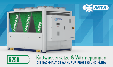 Propan-Kaltwassersätze und -Wärmepumpen von MTA bieten hohe Effizienz, definierte Sicherheitsstandards und niedrige Betriebskosten. Sie sind für den Einsatz in Industrie- und Gewerbe konzipiert, potenziell förderfähig und unterliegen nicht der F-Gase-Verordnung. Weitere Informationen zu R290 und passenden Geräten finden Sie in der Online-Übersicht.