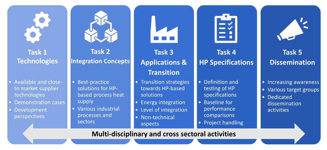 Die Studie „Annex 58 – High-Temperatur Heat Pumps“, den die Internationale Energie-Agentur (IEA) mit rund 50 Experten aus 14 Staaten erstellt hat, erläutert auf 350 Seiten auch anhand von vielen Beispielen den Stand der Technik bei Hochtemperatur-Wärmepumpen und deren Entwicklungsperspektiven und -potenziale. Solche Wärmepumpen sollen zur Erzeugung von Prozesswärme über 100 °C bislang dazu meist eingesetzte fossile Energieträger ersetzen. (Abb. © IEA)