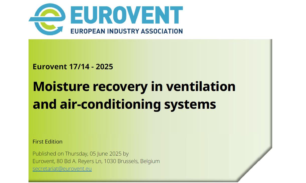 Wenn die Wärmerückgewinnung in einer RLT-Anlage um eine Feuchterückgewinnung erweitert wird, können je nach Standort und Klimabedingungen bis zu 50 % der zur Luftkonditionierung benötigten thermischen Energie einsparen eingespart werden. Dies ist ein zentrales Ergebnis der Empfehlung 17/14-2025 „Feuchterückgewinnung in Lüftungs- und Klimaanlagen“ („Moisture recovery in ventilation and air-conditioning systems“), die die Eurovent Industry Association, Brüssel, im Juni 2025 veröffentlicht hat. Sie richtet sich an Betreiber und LüKK-Fachleute, die kombinierte Lüftungs- und Klimasysteme planen. Die Empfehlung erörtert auf 32 Seiten Anwendungen zur Feuchterückgewinnung sowohl aus der Außenluft zur Abluft (Entfeuchtung und Kühlung im Sommer) als auch aus der Abluft zur Zuluft (Befeuchtung im Winter) in bivalenten Lüftungs- und Klimasystemen. Dazu bietet die Empfehlung einen umfassenden Überblick über Systeme zur Wärme- und Feuchterückgewinnung und erläutert Grundlagen und Leitlinien für deren Planung und Betrieb. Im Mittelpunkt der Eurovent-Empfehlung stehen viele sehr ausführliche Simulationen und Beispielrechnungen für verschiedene europäische Standorte und Betriebsbedingungen, die die erheblichen Vorteile der Feuchterückgewinnung im Hinblick auf Energie- und Kosteneinsparungen verdeutlichen.