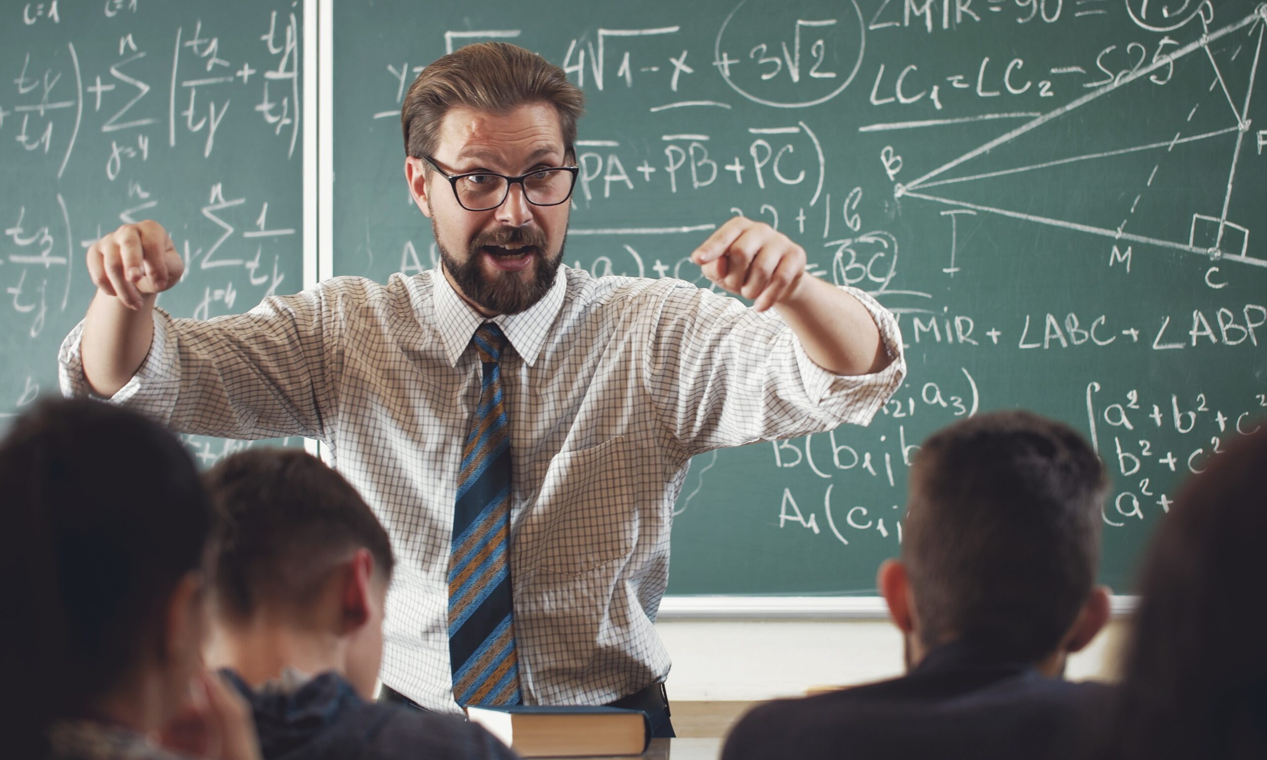 Lehrer Schröder ignoriert die Lustlosigkeit seiner Schüler und schreibt rasch einige Zahlen auf die Tafel.