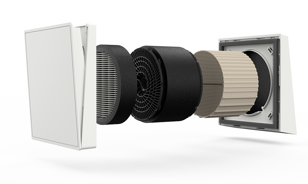 Mit dem „SmartFan Pro BT“ hat die getAir GmbH, Mönchengladbach, auf der ISH 2025 die jüngste Generation des dezentralen Wohnungslüftungsgeräts „SmartFan“ vorgestellt. Mit einer Einbautiefe von 205 mm ist es laut Hersteller das kompakteste Lüftungsgerät seiner Klasse. Weitere Merkmales seien die einzigartige Klingengeometrie eines eigens entwickelten Hochleistungsventilators und die Wärmespeicherkapazität des verwendeten Kunststoffs. Der Luftvolumenstrom ist in vier Stufen bis 55 m³/h regelbar. Der Schalldruckpegel gemessen in 2 m Abstand beträgt dann laut Hersteller bis 33 dB(A). Durch das Schalldämmelement „3K“ lassen sich die Schallemissionen weiter reduzieren, teilt getAir mit. Der maximale Wärmerückgewinnungsgrad ist mit 92 % angegeben.