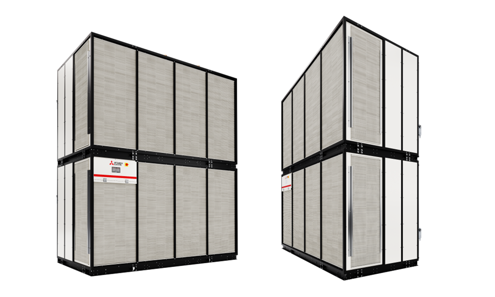 Die Mitsubishi Electric Europe B.V., Ratingen, hat ihre Fanwall „Mewall“ für Rechenzentren überarbeitet. Die neue Generation bietet der Hersteller in zwei Größen mit Kälteleistungen von 446 kW beziehungsweise 478 kW an. Die Fanwall ist für Rücklauftemperaturen von 30 bis 40 °C ausgelegt. Sie erreicht mit acht Ventilatoren einen Luftvolumenstrom von 129.000 beziehungsweise 134.000 m³/h. Die Leistungsaufnahme der Ventilatoren beträgt 24,2 beziehungsweise 23,2 kW. Den Schallleistungspegel gibt der Anbieter mit 88 dB(A) an. Die Abmessungen betragen 1.600 x 3.500 x 3.600 für die 446-kW-Fanwall beziehungsweise 1.600 x 4.000 x 3.600 mm bei 478 kW Kälteleistung. Laut Anbieter können Nutzer mit den neuen Fanwalls bis zu 55 % Energie gegenüber den Vorgängermodellen sparen. Mit patentierten Seitenfiltern betrage das Energieeinsparpotenzial sogar 63 %.