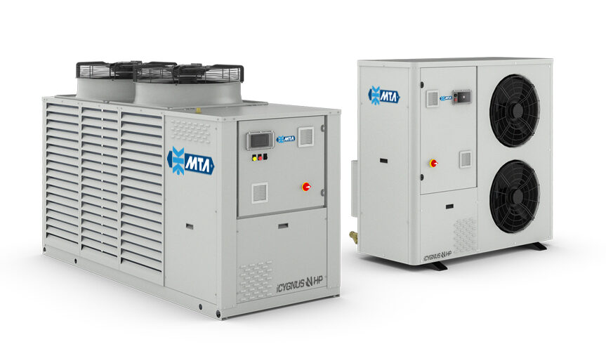 Die MTA Deutschland GmbH, Nettetal, hat ihre Propan-Baureihe der Luft/Wasser-Wärmepumpen vom Typ „Icygnus N HP“ um fünf Baugrößen nach oben erweitert. Die Serie umfasst nun neun Modelle mit einer Kühlleistung von 6,5 bis 51,8 kW und einer Heizleistung von 8,4 bis 66,3 kW. Bei größerem Leistungsbedarf ermöglicht ein Modularitätskit die Konfiguration von bis zu vier Einheiten mit bis zu 250 kW Heizleistung, teilt der Hersteller mit. Die Jahresarbeitszahl SEER (Kühlen) gibt MTA je nach Baugröße mit 4,02 bis 4,81 an, die Jahresarbeitszahl SCOP (Heizen) mit 3,99 bis 4,38. Die Wärmepumpen liefern Warmwasser mit bis zu 78 °C. Sie arbeiten auch bei Umgebungstemperaturen bis – 20 °C und können bis zu einer Außenlufttemperatur von 46 °C Kaltwasser für die Klimatisierung bereitstellen. Die Schalleistungspegel liegen zwischen 60 und maximal 85 dB(A). Kältemittel ist R290 (Propan, GWP 0,06).