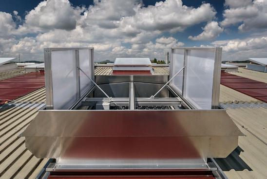 Natürliche Lüftung und Wärmeabführung aus Hallen durch Lichtkuppeln, Lichtbänder und Flachdachfenster