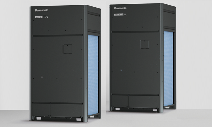 Die Panasonic Marketing Europe GmbH, Wiesbaden, hat eine neue 2-Leiter-VRF-Klimageräteserie namens „ECOi EX MZ1“ auf den Markt gebracht. Nach Herstellerangaben sind die Geräte in drei Baugrößen mit den Bezeichnungen 8 HP, 10 HP und 12 HP verfügbar. Die Kälteleistungen betragen 22,4, 28,0 beziehungsweise 33,5 kW, die Heizleistungen 25,0, 31,5 beziehungsweise 36,0 kW. Die Jahresarbeitszahlen ηs,c (Kühlen) sind mit bei 288,0, 310,1 beziehungsweise 292,2 angegeben. Die ηs,h-Werte (Heizen) beziffert der Anbieter auf 171,0, 172,4 und 170,3. Anwender können damit Rohrleitungen mit einer Länge bis 1.000 m realisieren und bis zu 64 Innengeräte anschließen. Der Schallleistungspegel beträgt laut Angaben des Herstellers im Normalbetrieb 78 dB(A) bei den beiden kleineren und 80 dB(A) beim größten Modell, was die Geräte für lärmsensible Bereiche wie Hotels, Büros und Bildungseinrichtungen prädestiniere. Kältemittel ist R32 (GWP 675). Dabei benötigt die Serie laut Panasonic rund 57 % weniger Kältemittel als ein vergleichbares R410A-System. Zur aktiven Verbesserung der Raumluftqualität sind alle luftgeführten Innengeräte serienmäßig mit der „nanoe X“-Technologie von Panasonic ausgestattet (siehe cci253040).