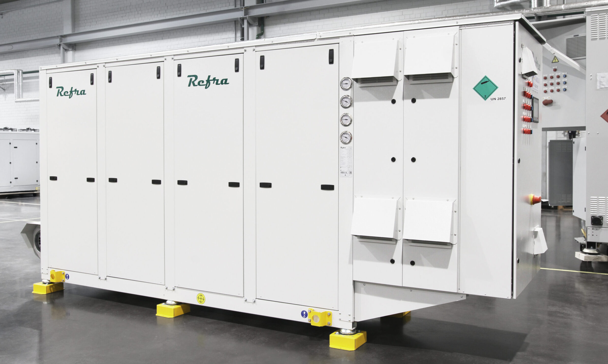 Die UAB Refra, Vilnius/Litauen, hat die neuen Wasser/Wasser-Wärmepumpen und -kühlsätze der Baureihe „Oasis“auf den Markt gebracht. Die Serie umfasst 24 Baugrößen mit Heizleistungen von 34,1 bis 516 kW beziehungsweise Kühlleistungen zwischen 26,8 und 410 kW. In Doppelfunktionskonfiguration kann das System gleichzeitig Wärme und Kälte bereitstellen. Die Jahresarbeitszahlen 𝜂𝑠,h für den Heizbetrieb gibt der Hersteller je nach Modell mit 233,8 bis 287,4 an. Im Kühlbetrieb liege die Jahresarbeitszahl 𝜂𝑠,c zwischen 173,4 und 206,2. Der Schallleistungspegel beträgt zwischen 73 und 90 dB(A). Kältemittel ist Propan (R290, GWP 0,06). Laut Hersteller folgen die Geräte dem in der Norm EN 378 „Kälteanlagen und Wärmepumpen – Sicherheitstechnische und umweltrelevante Anforderungen“ (2021) definierten Konzept der Klasse IV. Dieses sieht vor, dass alle kältemittelführenden Komponenten in einem Gehäuse mit überwachter Belüftung und Kältemittelleckdetektor untergebracht sind.