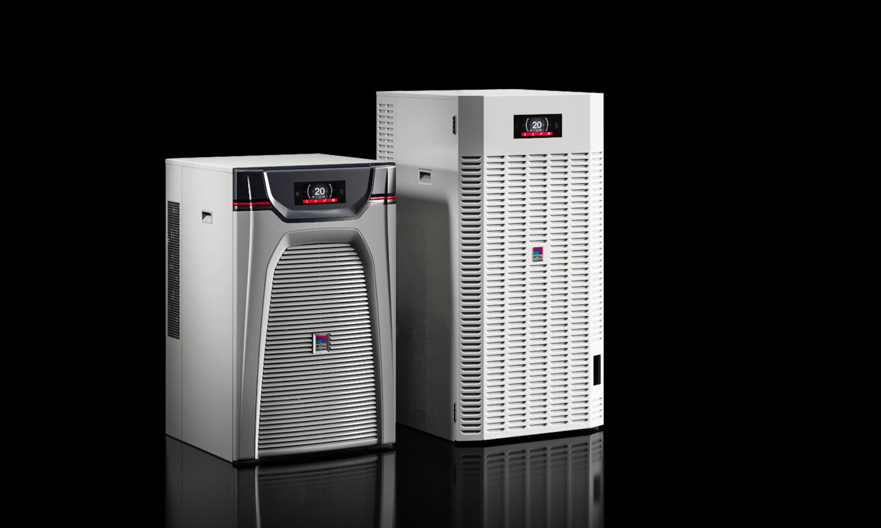 Die Rittal GmbH, Herborn, baut ihre Chiller-Serie „Blue e+“ für die Flüssigkeitskühlung in Industrie- und IT-Anwendungen mit neuen Größen von 1,5, und 7 kW Kühlleistung aus. Dafür sind laut Hersteller auch spezielle Outdoor-Modelle verfügbar. Neu hinzugekommen sind zudem „Hybrid IT Chiller“ mit 5,5 beziehungsweise 7 kW Kühlleistung, die über eine Freikühlfunktion verfügen. Als Merkmal der neuen Chiller-Varianten hebt der Hersteller die Temperaturstabilität mit einer Genauigkeit bis ±0,1 K im Beharrungszustand hervor. Mit einem zentralen DC-Inverter erreichen die Chiller laut Anbieter besonders im Teillastbetrieb Energieeinsparungen bis 70 % gegenüber herkömmlichen Kühlsystemen, mit freier Kühlung bis 90 %. Kältemittel ist R513A (GWP 631). Die Leistungszahl EER im Betriebspunkt A35/W18 gibt Rittal bei 50-Hz-Stromversorgung mit 1,67 bis 2,77 an. Der Schalldruckpegel, gemessen in 1 m Abstand, betrage 74 beziehungsweise 75 dB(A).