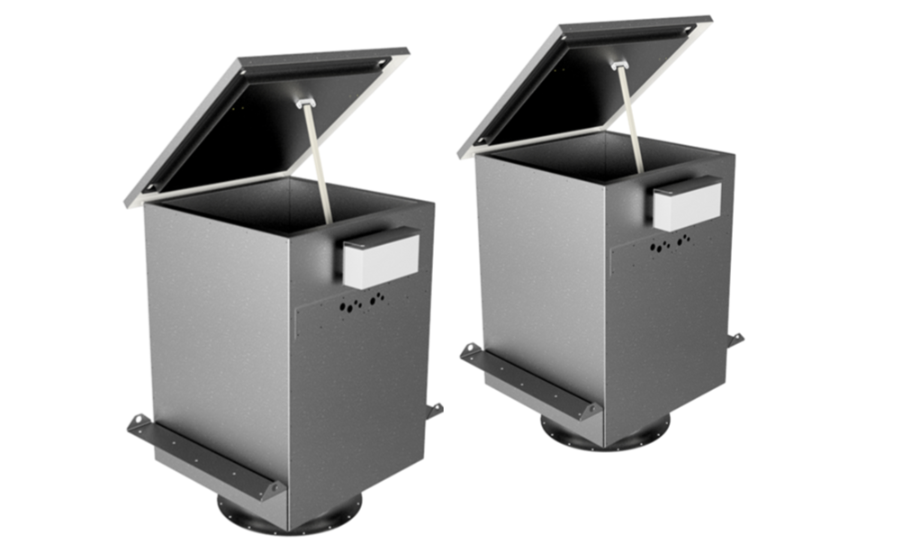 Die Trox X-Fans GmbH, Bad Hersfeld, präsentiert mit dem „DAX-I“ einen Ventilator axialer Bauart mit Induktionswirkung zur sicheren Entrauchung über das Dach. Durch die induktive Wirkweise wird der natürliche Auftrieb heißer Brandgase genutzt – der Entrauchungsvolumenstrom steigt deutlich. Bestehend aus dem Ventilatorvolumenstrom und dem zusätzlich induzierten Luftstrom wird ein Gesamtvolumenstrom von bis zu 75.000 m³/h erreicht, teilt der Hersteller mit. Durch die Induktionswirkung könne der Luftvolumenstrom nahezu verdoppelt werden. Die zuverlässige Ableitung von Rauchgasen erfolgt laut Hersteller auch bei schwierigen Witterungsbedingungen wie starkem Wind, Schneelasten oder installierten PV-Anlagen. Weitere Vorteile des DAX-I sind laut Trox X-Fans geringes Gewicht und niedriger Energiebedarf. DAX-I wurde in der Kategorie „Anlagentechnischer Brandschutz“ mit dem Feuertrutz-Award „Produkt des Jahres“ in Silber („Shortlist“) prämiert.