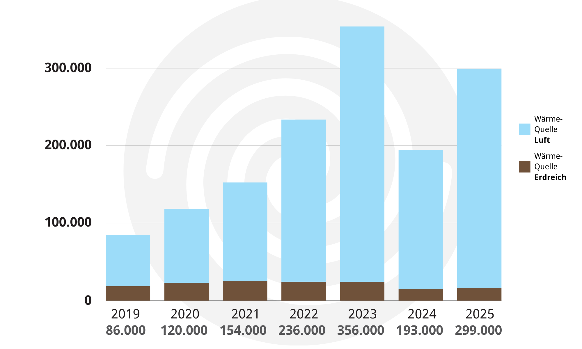 Die Wärmepumpen-Branche vermeldet ein erfolgreiches Absatzjahr 2025: Mit 299.000 Heizungs-Wärmepumpen stieg der Absatz gegenüber dem Vorjahr um 55 %. Auch die Förderanträge für Wärmepumpen sind im Vergleich zum Vorjahr deutlich angestiegen. Der BWP hält es angesichts weiter sinkender Nachfrage nach Öl- und Gasheizungen für notwendig, den Aufwärtstrend bei Wärmepumpen zu festigen.
