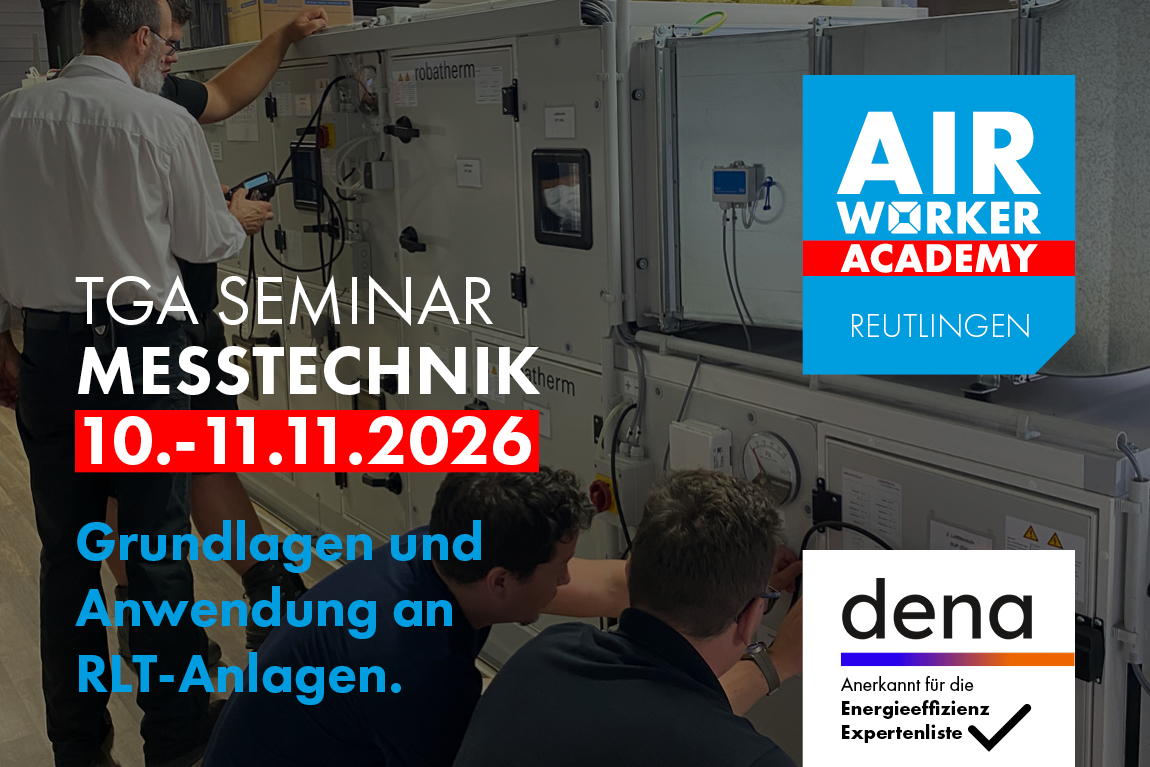 Das DENA‑anerkannte Seminar verbindet Theorie und Praxis der Messtechnik an Lüftungs‑ und Klimaanlagen nach DIN EN 12599 und DIN EN 16211. Thematisiert werden Messprinzipien, Messverfahren, die Auswahl geeigneter Messmittel, die Ermittlung von Luftvolumenströmen sowie die Bewertung der Messunsicherheit. Praktische Messungen sichern den Praxisbezug. Ziel ist es, präzise Messergebnisse normgerecht zu bewerten und zu dokumentieren. Das Seminar richtet sich an Planer, Sachverständige, Anlagenerrichter, Wartungsdienstleister sowie Verantwortliche für Betrieb und Instandhaltung von Gebäuden.