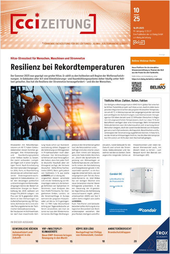 cci Zeitung informiert 14 Mal im Jahr über alle wichtigen Themen der Lüftungs-, Klima-, Kältebranche.